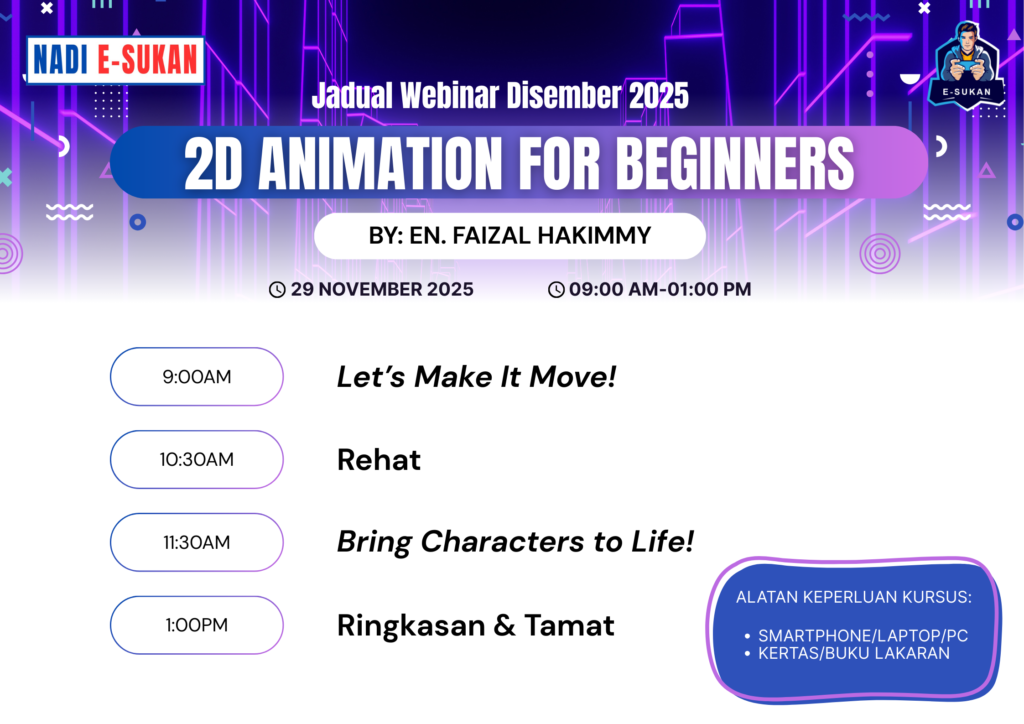 MAKLUMAN WEBINAR NADI E-SUKAN – 2D ANIMATION FOR BEGINNERS